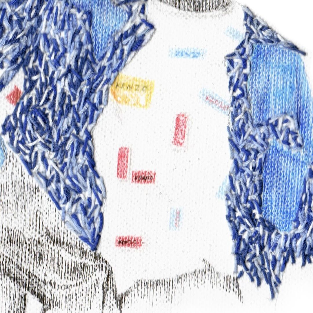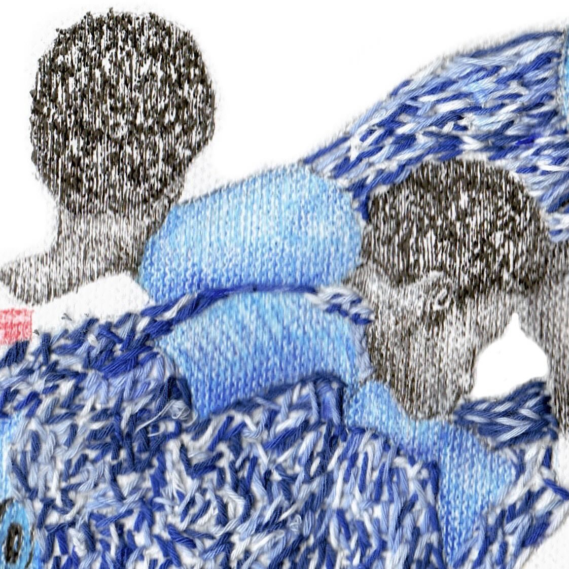 Pencil, pen and thread on canvas